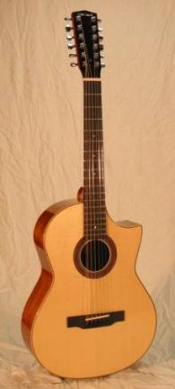 Braced for medium gauge steel strings, it produces a full sweet sound, well suited for finger style players who are looking for a well balanced and responsive instrument.