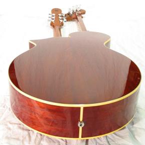 My version of the Gisbon model U is built like a modern flat top guitar with braced top and back rather than the carved arch top and back of the originals. This gives it a sound more like a flat top guitar that most people are used to. It also makes for a lighter more responsive instrument. The body is scaled down to make it less cumbersome to hold.