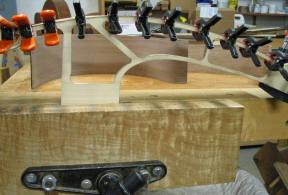 anchored to the upper bout and pass over small bone nuts. They