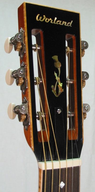 Slotted peg head with Waverly tuners, bound with curly maple