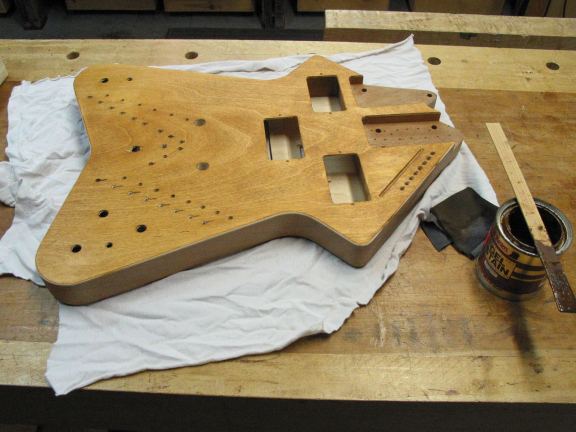 The final finish will be a sprayed on clear coat of satin lacquer.